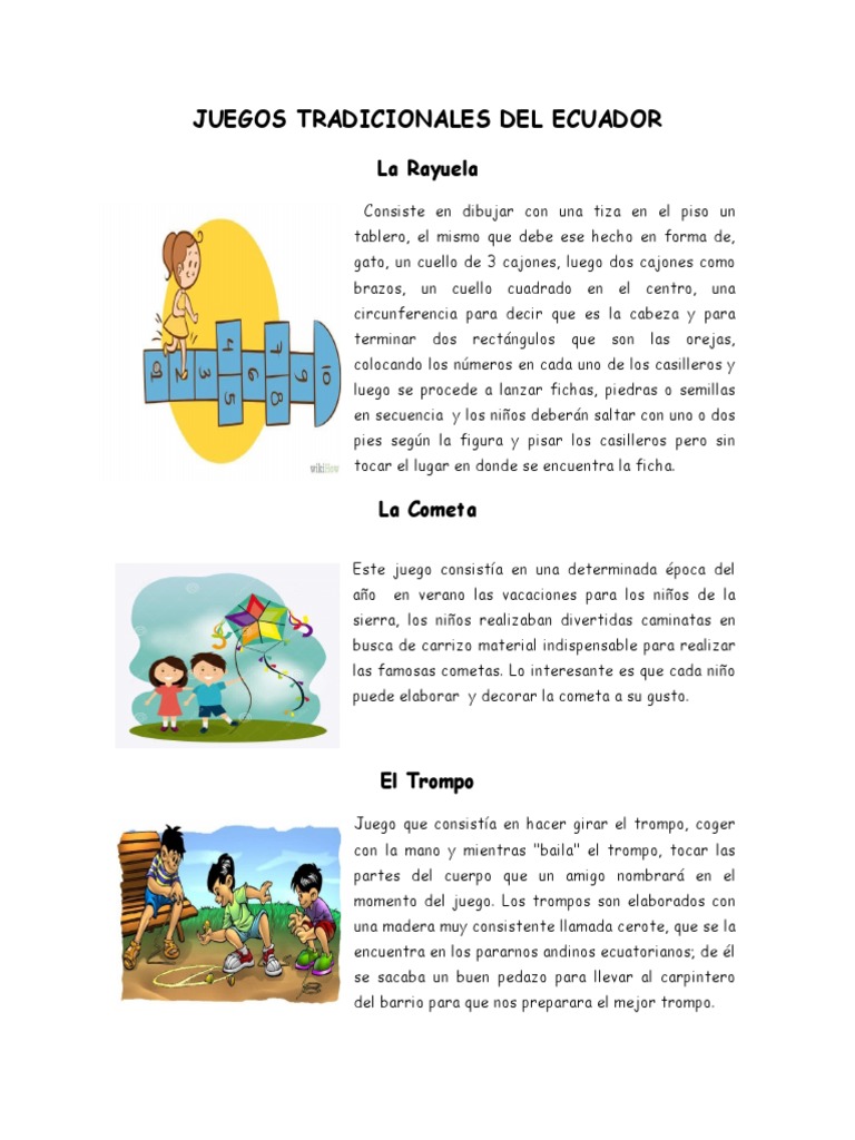 En el transcurso del tiempo, el hombre ha formado parte de una evolución permanente, el cual, ha desarrollado diferentes. Mejores juegos tradicionales y populares. Revivir los juegos tradicionales ecuatorianos y nunca olvidar que la vida también es linda con. Los juegos tradicionales y populares del ecuador. Los juegos tradicionales de ecuador sobreviven al paso de la tecnología y reflejan la creatividad de las comunidades.
